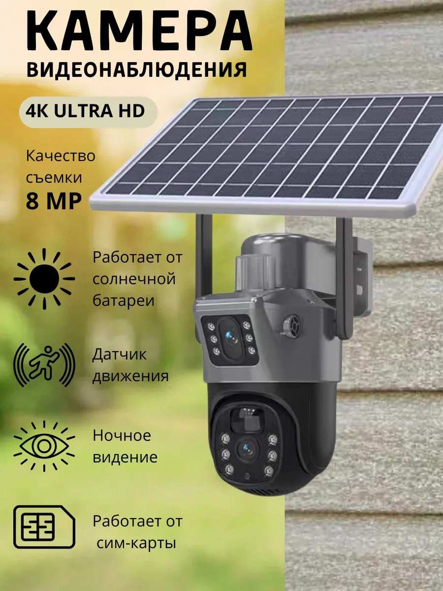 Универсальная двойная камера видеонаблюдения 4G LTE -это уникальное устройство, которое в себе все необходимые функциональные возможности для обеспечения безопастности вашего имущества.Автономная с солнечной батареей камера подключается к сети Интернет через сотового оператора.